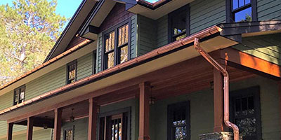 Copper gutters and downspouts